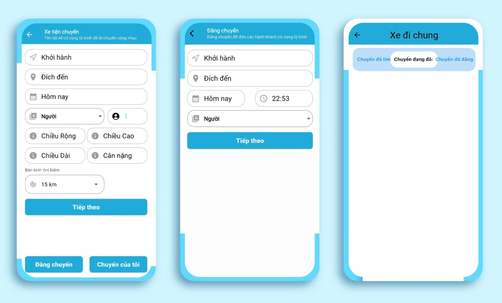 => Tiến hành các bước tiếp theo để Đăng chuyến tìm khách hàng